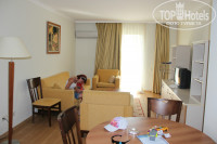 В итоге мы жили в 3-х комнатной "квартире": две спальни- примерно 12 и 20 кв.м , гостиная 30-35 кв.м с кухней и балкон. Состояние мебели не очень, но это компенсировалось стиральной машиной и нормальным холодильником.(у кого дети меня поймут). Убирали в номере средне,наверное,как в большинстве отелей,но всегда днем,пока мы на пляже. Окна наши выходили на аква-парк и детский клуб нашего отеля.