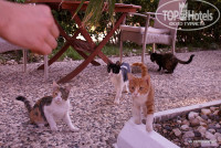 Есть несколько столиков на улице для любителей свежего воздуха, компанию вам составят несколько прикольных хвостатых кошек.