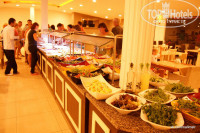 Питание: на уровне хорошей четверки. Ожидали гораздо худшего. Салатов на выбор штук десять, парочка основных блюд. В начале - небольшое столпотворение вечноголодных, через минут сорок становится всё спокойно. Если не хватает вилок (жаловались тут), их можно самим без проблем взять в левом дальнем углу, а не ждать, когда к вам их принесут.