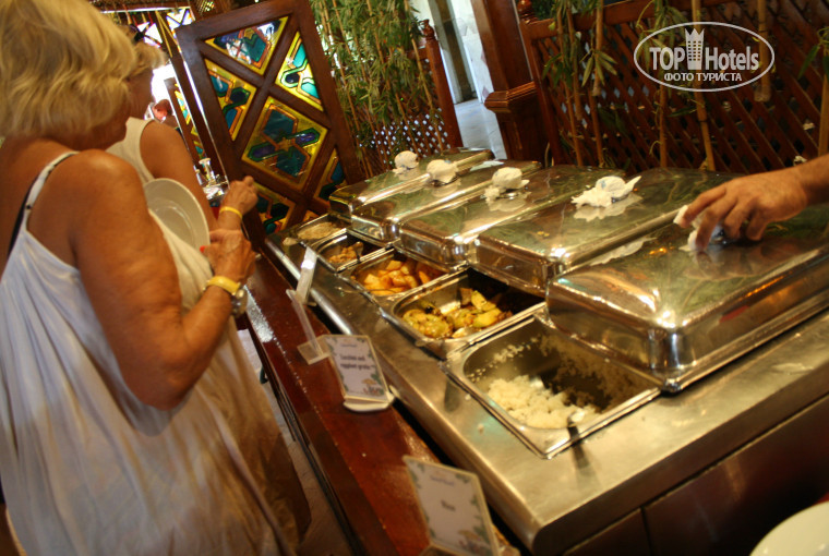 Еда. В принципе как и в любом египетском отеле практически тоже самое, овощи, курица, рыбка, мясо, рис, макароны, десерты, сыр, колбаса, хлопья с молоком, йогурты, блины, тосты, круассаны. Голодным не останешься всегда можно на свой вкус выбрать. утром завтрак, позже обед в ресторане у пляжа или же гамбургеры с салатами у бассейна в это же время, во время полдника вафли с мороженным и сиропами, и пицца, вечером ужин. На втором этаже в холле после ужина стоит стол с бутербродами и фруктами. Всегда можно что-то перекусить.