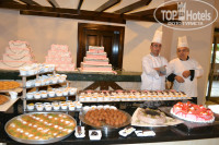 Питание:точно не 5* дай бог на 4-,еда однообразная,нехватка чистой посуды и приборов,утром очереди за блинчиками и яичницей,на обед обычно из мяса курица и индейка пару раз была рыба.Сладостей полно всяких на любой выбор,вкусное мороженое на ужин тоже порадовало,давали без ограничений.Напитки отдельная история:Что касается соков,то это ЮПИ, соков в пакетах здесь нет хотя и заявляют отель как 5*,кола ,спрайт и фанта как и везде пей не хочу.Алкоголь как и везде в Турции в отелях так себе,но каждый найдет себе чего нравиться.По поводу ресторанов А-ля карт,советую сходить разнообразия в еде и вообще обстановка другая ,понравился рыбный и итальянский ресторан(записываться на ресепшене).В барах на территории всегда есть чем перекусить(Гамбургеры,хот доги, лепешки вкусные,фри ,салатики и напитки)