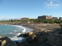 Зона отеля прекрасная! Очень много зелени, все ухоженное. Пляж песок и мелкая галька. Левее пляжа красивое каменное плато.