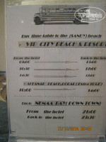 4. Пляж. 1-й пляж платный в бухте Рас Ум Эль Сид (http://wikimapia.org/#lang=ru&lat=27.857480&lon=34.301720&z=15&m=b). Мы этот пляж знали и претензий к нему не имели, кроме платы 10 Ефунтов за человека, это договор с отелем. Спуск по лестнице по травмоопасным 116 ступеням. Лежаков всем хватало. После завтрака не дожидаясь бесплатного автобуса (прикладываю фото расписания), останавливали такси, договаривались за четверых 2$. Обратно так же на такси. 2-й пляж общественный бесплатный VIP CITY BEACH рядом с пляжем отеля Dessole Seti Sharm в заливе Шарм Эль-Майя (http://wikimapia.org/#lang=ru&lat=27.860818&lon=34.296978&z=16&m=b). На нём были 2 раза. Вход пологий, кораллов и рыбок нет.