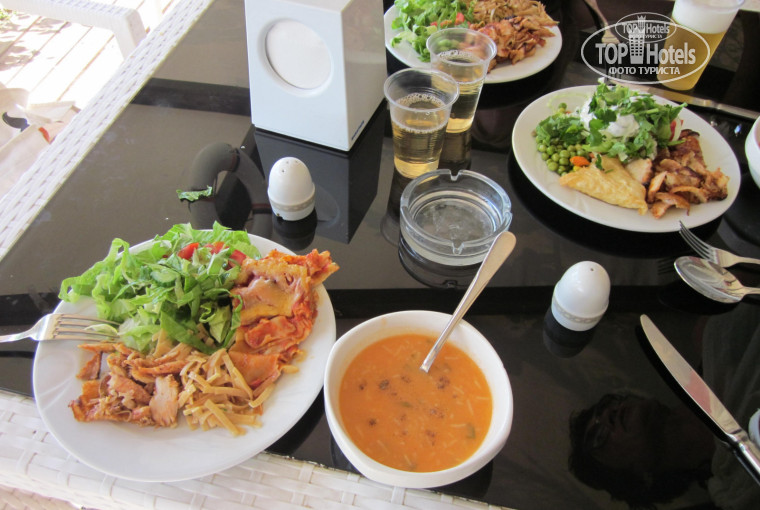 Завтраки, обеды, ужины проходили в ресторане Теодора. Не знаю кому как, но питание было на уровне. На любой вкус, как для вегетарианца, так и для любителей мяса. Была курица, индейка, говядина, баранина. Много овощей, фрукты. Сладости – это отдельная тема )) По утрам каши, йогурт, мюсли, блинчики.