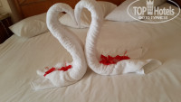 Доброго времени суток! Хочу поделиться впечатлениями о моём с мужем отдыхе)) Начну с заселения...Прилетели мы рано утром(7:00). ранее нами был забронирован стандартный номер, но когда мы пришли на ресепшен, нам предложили за дополнительную плату, шикарный номер с видом на море,и мы конечно-же согласились). заселение в номера начинается в 14:00, но так мы поменяли номер, нас заселили в течении 10 мин. Номер был очень хорошим, чистым! Отдельное спасибо нашему уборщику, постельное и полотенца менялись каждый день, воду приносили тоже каждый день(даже не успевали выпивать).Очень понравились разные фигурки из полотенцев на постеле(см. фото). Многие пишут что в столовой нечего есть... наоборот-еды там-ВАЛОМ!!! Фрукты, салаты, мясо, рыба... на любой вкус) Голодными не останитесь) В столовой очень приветливый и дружелюбный персонал, особенно Мохамед! Постоянно приносил всевозможнейшие коктейли) Территория отеля очень красивая! Море шикарное! Единственное растроила анимация... развлечения на территории отеля только для детей, а для взрослых, за мега доп.плату вывозят в клуб... Всем рекомендую!