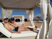 Красное море ни с каким морем, конечно, не сравнишь! правда, пляж дикий, его еще не довели до ума. есть места, где можно войти, но в основном галька (берите с собой тапочки для коралл), будьте аккуратны, потому что там плавает много живностей (особенно рыба-крылатка! змеи!). Лежаков бери - не хочу! любые на выбор! Для пляжа выдают полотенце (при въезде Вам выдают карточку, которую, вы в "киоске" (деревянные хижины) - напротив бассейна, обменяете на полотенце (желто-белое)). На территории есть два бара (работают с 10 до 17.00), где вы можете в течение дня насладиться прохладительными, горячительными напитками, отведать обед, попить кофе, чай. В бассейне вода холодная! Каждый день очищают.