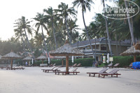 Отель находится на береговой линии и представляет из себя несколько двухэтажных корпусов, часть из которых находится практически на пляже. Мы жили именно в таком корпусе на первом этаже. Наш номер был с террасой и из номера мы сразу выходили к морю. Вечером можно посидеть на террасе, наслаждаясь шумом моря и тропическим воздухом. Территория отеля - зеленая, цветущая, в саду постоянно работают вьетнамцы - поливают, подстригают, убирают.
