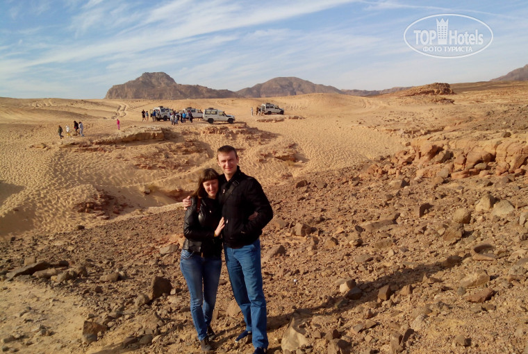 Ездили на экскурсию "Цветной каньон+Голубая лагуна", брали у туроператора, за 70$ с человека. Не ездите на нее НИКОГДА!!! Везли нас около 1,5 часа на джипах (старая тойота лэнд крузер). В кузове две лавки напротив друг друга, пятую точку не чувствуешь уже через час. И вот привезли нас в каньон. Песок, камни и все. Фото прилагаются. Цветными их назвать трудно, гранитные камни красно-желтого цвета. На этой экскурсии несколько раз нападали попрашайки, местные дети. Отдали им сухой завтрак, который и есть то нельзя (опять же спасибо отелю, вчерашние булки, бутылка воды, и два фрукта). А дальше нас повезли в "голубую лагуну". То ли арабы не знают что такое лагуна, но привезли нас в голубую дыру. Разместили в каком-то деревянном строении, туалет платный, антисанитария, готовят еду в бараке, лежаков нет. Гид утверждал, что там круче, чем в Шарме, такой красоты вы не увидите нигде. Все ВРАНЬЕ. Да, рыбки и кораллы красивей, чем в отеле, но до Шарма им не дотянуть.