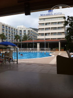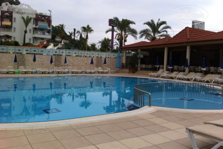 Территория отеля очень маленькая, есть 2 бассейна, на заднем дворе и на переднем(там всегда было занято). С двух сторон впритык стоит два других отеля, это не очень удобно, особенно по вечерам, когда аниматор пытается устроить развлекательную программу, а его музыка перебивается музыкой соседних отелей.