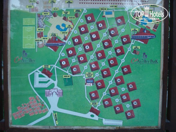 Club Ali Bey Park-просто сказка!!!были там три раза с ребенком (в первую поездку было 2 года) и собираемся поехать вновь!!!Это лучший отель,в котором когда либо мне довелось побывать.Недостатков нет обсолютно,а достоинств масс!1)Еда-2 огромных основных ресторана(один на немецкой,дрогой на русской сторонах) с огромным выбором блюд-мясо,птица,рыба(в различных вариациях),салаты,свежие фрукты.великолепное детское меню.Есть еще 2 ресторана на пляже.Это просто нечто!!!Ужин в лучах заходящего солнца-непередаваемые ощущения.В одном из прибрежных ресторанов(который находится на немецкой стороне) проходит поздний завтрак.На территории аквапарка находится не большой рестран-очень удобно,можно не отрываяся от веселья неплохо перекусить.Большое количество баров с разообразными алкогольными и безалкогольными напитками.Около 3-4 часов дня в бары приносят разнообразные сэндвичи и пирожные .Один раз в неделю проходит "Арабская ночь".Приглашаются женщины в национальных костюмах и готовят какието национальные лепешки-очень вкусно и необычно-это огромный плюс отеля.Еще есть гала-ночь-черно белая вечеринка(не строгий дресс код-желательный цвет одежды-черно-белый,но если Вы придете в розовом или,допустим зеленом,никто Вас осуждать не будет).В гала-ночь всех угощают пуншем и шампанским.2)Проживание-тридцать двухэтажных домиков.Номера 2х видов-обычные(2+1 кровати) и фэмили-румы.Фэмили-рум очень удобен при отдыхе с двумя или тремя детьми-4 полноценные кровати + возможность использования детской кроватки при необходимости.Номера оборудованы всем необходимым-большой фкаф с вешалками,душевая кабина,большое зеркало в ванной,мини-бар,телевизер,кондиционер(с первого раза,правда,не поймешь-как им пользоваться,но потом привыкаешь),балкон,есть место для сушки белья,большое количество места для хранения вещей,сейф в номре.3)Развлечения-при желании можно занять все свободное время-баскетбол,волейбол,футбол,теннис,шашки,шахматы,кости,водные развлечения.Отдельное внимание хочу уделить теннису-великолепен как для начинающих(хорошая школа теннса при отеле),так и для профессионалов.56 грунтовых корта,с возможностью ночной игры(все корты оборудованны освещением).Снамое потрясающие,чтот есть в этом отеле-вечерние шоу!!!Это просто великолепное зрелище-очень высокий уровень постановки,потрясающие костюмы,свет,музыка-просто потрясающие!!!Шоу-программы несколько обновляются год от года,но даже те,которые смотрнли не один раз,готовы смотреть вновь и вновь.Во время шоу-программы официанты обслуживают столики.Еще есть активитес в бассейне-коктейль-игры.Очень весело,после игры всех участников угощают алибеевским коктейем)))Есть возможность полетать на парашуте и на самолете.Тренажерный зал(за отдельную плату).4)Релакс-СПА цетнр.Турецкая и финская сауны,разнообразные массажи.Есть неболишие СПА домики на берегу моря,там делаюи массаж-ощущения потрясающие.На территории есть салон красоты(косметолог,маникюр,педикюр),парикмахерская.5)Аниматоры-отличная команда аниматоров!!!Основной состав постоянен,очень весело проводить с ним вместе:)