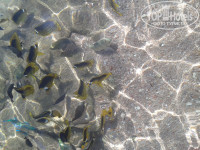 ПЛЯЖ и ТЕРРИТОРИЯ: Территория зеленая,очень ухоженная,прям приятно было по ней ходить! Комаров и кошек мало. 2 бассейна,один из которых всегда одогреваевый,только грязноватый к середине дня. Пляж не плохой,но я не люблю заходить в воду с пантонов,потому что боюсь рыбок.Поэтому почти не купалась в море,а только мочила ножки по бедро – есть 2 таких спуска.Но и деткам там поплескаться можно. Рыбки плавают прямо в нескольких см от тебя-красиво. Продавцы косичек и массажей не назойливые. Раз откажешь им и больше не липнут. Персонал вообще весь очень дружелюбный ,улыбчивый,приятный. Если лежаком и могло не хватить,то всегда были доп матрасы. Как же это удобно.я лежала всегда справа прямо у воды.