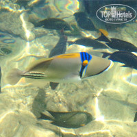 Много писать не хочется,поэтому кратко.....По приезду в отель отдали паспорта с 20$ бумажкой и получили большой номер с видом на море.Ребята с рецепшена очень приятные и обходительные и знают не плохо английский) Так как мы приехали около 14-00,то успели и пообедать.Выбор блюд большой,каждый найдет себе по душе вкусняхи)....единственное мало фруктов( В ресторане есть кофемашины.Далее пляж))).....песчаный-многоуровневый берег,небольшой пантон и два спуска к морю по ступенькам из камня( тут мы в дальнейшем наблюдали прилетающих по утрам цапель).Море было бодрящее примерно +22 градуса,но это не мешало плавать с маской и наслаждаться красивыми кораллами и рыбками,которых тут полно и разных размеров и цветов.Анимация в отеле спокойно-хорошая,не надоедливая) уже с утра начинается музыка и озвучивание мероприятий на день,а вечерами классные шоу проводят они)))В отеле много иностранцев и мало русских.Территория довольно большая и очень ухоженная.За время отдыха мы посетили три ресторана( запись туда с 10-12 у рецепшена)рыбный,итальянский и восточный, последний понравился больше всех.Нам там очень понравилось и если вы ищете спокойный отдых без тусовок и "тагила",то Вам сюда)))!!!