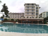 Прилетели рано утром и получили сразу ключи от номера. Практически все номера в отеле с видом на море, есть немного с видом на горы. Нам достался с видом на море и бассейны. Осмотрели территорию и остались очень довольны, так как территория небольшая и уютная, много лежаков с матрасами вокруг бассейна и на пляже. Очень порадовало питание в отеле, потому что было очень разнообразным и вкусным. Мне, как любителю рыбы и морепродуктов, особенно радовало наличие разнообразных рыбных блюд, а друзьям - разнообразие мясных. Десерты из тыквы с ореховым соусом - вне конкуренции. Номера в отеле большие, 3 человека разместятся нормально. Плюс небольшой кухонный уголок. Вся мебель и сантехника новая. Особо хочу отметить сервис в отеле. Весь персонал очень дружелюбный и стараются запомнить клиентов по именам и предпочтениям в напитках и еде. За 10 дней отдыха мы не скучали благодаря аниматорам, которые постоянно устраивали конкурсы и веселые розыгрыши. Отдыхом остались довольны, рекомендую друзьям и сама хочу еще раз приехать в этот отель. Еще ставлю одну "5" за расположение. Близко к Кемеру, но не в центре.