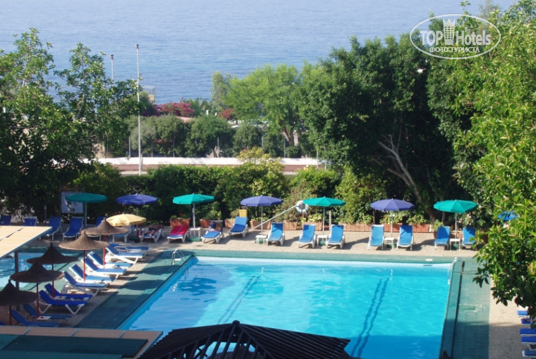 Отель сам конечно построен давно и это видно, но для трешки отличный отель! Номера светлые, чистенькие, все что нужно есть, даже холодильник - а он так нужен в жаркий день. У нас всегда были в наличии холодные напитки. Большая часть номеров с видом на море и бассейн. Большой плюс плотные шторы, если вы решили вздремнуть после обеда.