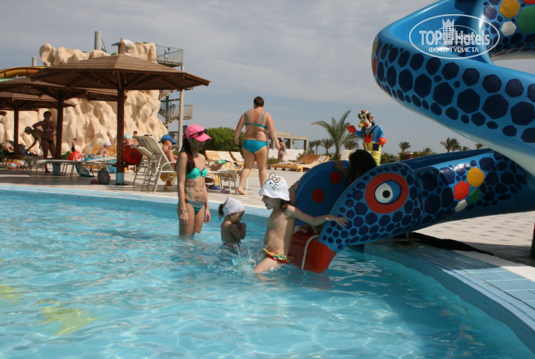 Аквапарком не пользовались, но есть несколько детских бассейнов. Есть также детский бассейн возле детского клуба. Есть и аквапарк с горками для малышей, там же те же горки, только в песке (типа площадки детской), но опять же на солнцепеке. Один детский бассейн был нормальный, мы лично видели, что вечерами спускали воду, утром набирали заново. Но есть бассейны, где вода почти зеленая, мутная.