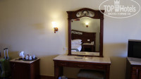 Номер был удобный,просторный, со всем необходимым:холодильник,чайник с принадлежностями,телевизор с тремя российскими каналами и сейфом.Сейф работал отлично.