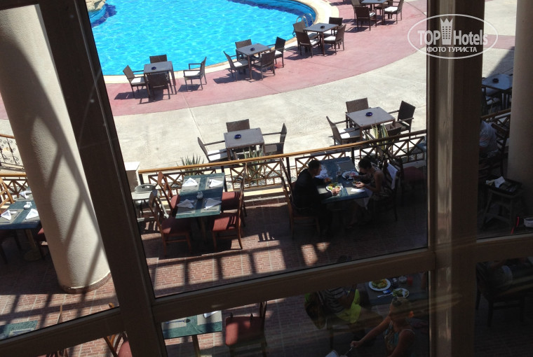 Отдыхали парой в конце апреля, все понравилось. Приехали в отель 24.04 около 20:00, нам сразу выдали ключи от номера нацепили браслеты и пошли в номер осмотреть его, сказали если что-то не понравится можно поменять. Номер был вполне достойный с отдельным гардеробом, мебель конечно не новая, но были готовы к этому, начитавшись отрицательных отзывов. Мебель не разваливалась, как пишут некоторые, все работало в номере и было на своем месте. Номер находился рядом с бассейном и я вместо зарядки перед завтраком ходил плавать, он вполне большой (около 35м) и утром совсем нет людей. Затем шли на на завтрак.