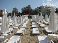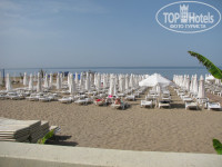 Видела что убирали водоросли какие вымыло на пляж. И загребали песок от камушков и ракушек. По этому на пляже очень хорошо ходить...чистый приятный песок, ничего не колит ноги. Слева от нашего пляжа, на соседнем, есть волейбольная площадка.