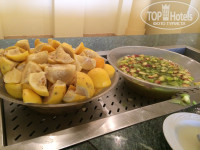 Везде полная антисанитария, не хватает посуды, неприятный запах - мухи и воробьи, летающие по залу, кошки. Несвежие и плохопромытые гнилые фрукты и овощи (из фруктов только нарезанные гнилые апельсины и какой-то компот из яблок, прокисающий из-за жары), все жарят на перекаленном масле. Ощущение просто свинарника какого-то. Грязная старая посуда, нет ложек. Ребенок почти ничего не ел, все остальные мучались диареей. Воду из куллера пить нельзя - сказал даже врач в отеле!!!!