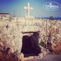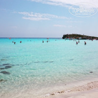 Пляж, при выборе отеля пляж играл роль, я выбирала между пляжем Лиманаки (который рядом с Тофинис) и Нисси (другой конец города), все таки склонилась в пользу Лиманаки, и тоже была права, пляж прекрасный, чистый, вода бирюзовая, песочек белый, рядышком пещеры, гроты, муж нырял в воду, там есть откуда. Нисси тоже замечательный пляж, иногда туда ездили, 15 минут на автобусе, 10 на такси, он по своему интересен конечно, песочек совсем белый, вода изумрудная, бирюзовая, кристальная, сказочное место, но нам и наш очень нравился, в основном из-за камней, кстати) И на Лиманаки бич потише и народа поменьше. Ездили еще пару раз на пляж Агиа Текла, там рядом церковь Святой Феклы, новая церковь и пещерная, очень интересное место. Пещерная церковь производит впечатление. Это где-то 1-2 км от Айа-Напы, можно доехать до аквапарка на 101/102 автобусе и пройтись пешочком минут 10. Около церкви можно сделать красивые фотографии, кстати, кому интересно пофотографироваться, она с виду простая, белого цвета, но там по 4 арки с обеих сторон, они задают ритм, ну и вообще в белой арке с видом на море фотографии очень эффектные получаются. Пляж там тихий и пустынный)