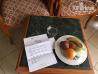 Правда на следущий день принесли тарелку фруктов( еще раз приносили перед отъездом тарелку фруктов и сладости),и на мужа было благодарное письмо что мы опять выбрали их отель, и один раз пополнили бар было 2 сока, кола, спрайт и две баночки пива. А обещанные халат и тапочки так и не дождались .