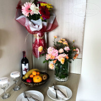 Номера: Просторные, с балконом, с мини кухней, чайник: чай, кофе, сливки. Мини бар: вода, кола, спрайт. Все пополняется каждый день. В ванной комнате тоже все принадлежности, мочалка, зубная щетка, гели, шампуни, бальзамы и т. д. Уборка номеров и смена полотенец каждый день, смена белья через день. Убирали очень хорошо, пылесосили, мыли полы, я осталась довольна.