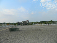 Что касается территории отеля то она большая, тенистая, вся утопает в зелени и в цветах - одним словом просто сказка. Конечно, спасибо огромное рабочим, которые не заметно для отдыхающих поддерживают эту красоту. На этой территории находятся 4 бассейна, один из которых (релакс) расположен в глубине отеля и отдыхают там исключительно взрослые - ни какого шума, гама, визгов и писков - полная тишина и покой!!! А вот на центральном (он очень большой, с горками) все наоборот - все «кипит». Аниматоры не дают скучать, и надо сказать делают они это не навязчиво. Пляж очень большой, песочный, местами мелкая галька. Лежаков хватало всем, и даже были свободные. А вот у бассейна лежаки с раннего утра уже занимали. В основном отдыхающие были из России и бывших Советских республик.