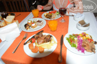 мясо готовится на гриле,всегда горячее и очень вкусное,салаты я всегда терялся что выбрать потому что огромный ассортимент и ещё я сладкоежка я попал в рай,пирожное мммммм супер