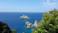 До центра города - 30 минут пешком.Недалеко смотровая площадка в районе Канони. Рядом с отелем - автобусная остановка (билет у водителя - 1,5 евро). Прекрасный променад вдоль набережной до самого центра города. Вдоль набережной много таверн. Брали завтраки-ужины. В ресторане отеля обширно представлена местная кухня,особенно на ужинах. На Троицу к завтраку подали шампанское и красную рыбу, а вечером - пасту с мидиями и кальмарами. Очень вкусно!