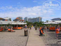 3) Пляж: песок, заход в море - небольшая полоска мелкой гальки. Вход в море постепенный, очень удобный. Детям много места для купания. Сам пляж достаточно чистый, но песок с граблями не проходят - только ровняют. Поэтому кое где все же попадаются бычки от сигарет и трубочки от коктейлей. Иногда, простите, кошачьи какашки. Шезлонгов сначала хватало, но когда отель заполнился полностью - перестало хватать. Я на отдыхе всегда встаю рано, а так как у нас компания 12 человек, то мы с подругой ходили в 6 утра, занимали нужное количество шезлонгов, купались сначала в море, потом в теплом бассейне и шли на завтрак. Когда граждане подтягивались к 9-10 утра на пляж - все шезлонги уже были заняты. Полотенца пляжные чистые, иногда не новые, но это не напрягает. Полотенца не воруют!!! Их сами отдыхающие бросают на пляже, в кабинках для переодевания, у бассейнов. Грязные, сырые, а утром (сама наблюдала) уборщики ходят и собирают эти грязные полотенца и относят их в стирку. Так что нечего кричать, что украли полотенца - не забывайте. А если сами потеряли - нечего тырить их у других.