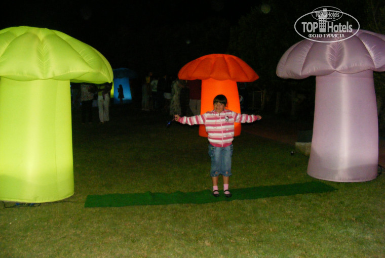 5) Анимация: стараются ребята. Конечно отель не разоряется на какие то дорогие шоу, но самодеятельность на высоте. Была гала вечеринка. Начали с Майкла Джексона, намного промахнулись ребята. Обставили все красиво, какие то грибочки светящиеся, костюмы, танцы в стиле Джексона. Но драйва граждане сразу не почувствовали и больше половины ушли, а когда началась хорошая музыка с дискотекой - половина уже спали. Детская анимация - дети довольны. То привидениями бегали, то Красную Шапочку искали, то еще кого то. На детской анимации традиционные песни, награждаю победителей детских конкурсов грамотами и фруктовыми коктейлями. Мелюзга в восторге.