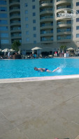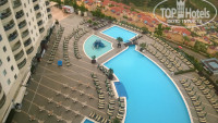 Отдыхала с ребенком 13 лет в конце мая. От аэропорта до отеля дорога составила 3 часа 20 минут. Лично мы ее почти не заметили( очень веселый гид Анекса Толгар развлекал всю дорогу)))...Приехали в 12часов 20 минут.На рецепшене нас сразу отправили на обед.После мы подошли заселяться. Русскоговорящая девушка Эльвина без доплат( у нас была оплачена вилла) переселила нас в основное здание ( по нашей просьбе), я потом отблагодарила)) : 11 этаж, южное крыло, вид на море,горы и олимпийский бассейн.Номер двухкомнатный:встроенная кухня, большой холодильник, вода в нем - 2 бутылки по полтора литра, халаты, тапочки,плазма, утюг,гладильная доска, душ,джакузи,огромный балкон и т.д.Все как в сказке))) В ресторане кормят очень хорошо, всегда можно выбрать по своему вкусу...Питание это отдельная тема...)))Ощущение, что кормят постоянно и везде))) На ужин приходили совсем не голодные, а потому что надо))) Напитки в автоматах : яблочный, ананасовый ,вишневый ,апельсиновый; еще в автоматах кофе и горячий шоколад у бассейна и аквапарка.В барах соки из пакетов, вино,коктейли и напитки покрепче.Пляжные полотенца по картам. Аквапарк отличный!!!На море ходят автобусы каждый час, если народу много сразу дают второй. На пляже начинают кормить с 12-30, до этого только напитки.Заход в море не очень: узкая полоска между плитами,но и там внизу плита и валуны.Если бы не волны, то это была бы не проблема.Если у кого дети осторожней .Для взрослых, если сразу плыть ,то не проблема)) Руководству отеля надо решить проблему с заходом в море.Отель шикарен, пляж большой,места много,бар на пляже отличный,хорошо бы очистить заход в море , чтобы купаться стало безопасно ,без риска разбиться о камни. Но в целом даже заход в море не влияет на мое желание полететь туда опять))