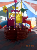 В отеле и на пляже очень много детских площадок. Моему сыну особенно понравились площадка с пиратским кораблем и батут. Кроме того, на территории живут павлины, а на пляже утки. Наши дети постоянно с ними разговаривали и кормили листьями)) Также порадовал детский бассейн с водяными горками. Все яркое, новое, чистое!!! Красота!!!