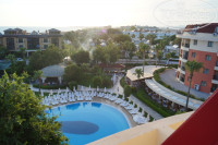 Территория отеля очень небольшая, но ухоженная с большим количеством деревьев, зелени, цветов. Территория включает в себя пляж, бассейн, детский бассейн, два корпуса, в первом корпусе на нулевом этаже находится ресепшн, лобби-бар и главный ресторан. Рядом со вторым корпусом – мини-клуб и аля-карте ресторан. Также имеются еще два бара рядом с бассейном и пляжем и амфитеатр, в котором проходят вечерние шоу, дискотека и часть анимационной программы. По питанию в главном ресторане - претензий нет, всего было в достатке и мясо и рыба и все остальное. Яичницу, блины утром и блюда на мангале в обед и ужин, а также арбузы и дыни найдете на улице рядом с рестораном. Один раз даже делали роллы, по мне так посредственные, но есть было можно. Помимо основного ресторана перекусить можно в снек-баре, где можно разжиться гамбургерами, сосисками и картошкой, а также в разное время дня лепешками, мороженным и кондитерскими изделиями. Я там обедал всю вторую половину отдыха, когда жаль было тратить время на душ, переодевание и поход в главный ресторан. Напитки вполне сносные, особенно по сравнению с Египтом, плохо, что импортные напитки не были включены. Коктейли как из импорта, так и из местного алкоголя делают тоже вполне сносно. Да, это не Куба и не Доминикана, но все же. Пиво тоже пить можно, но, говорят, его бодяжат с водой и возможно это утверждение небезосновательно, судя по вкусу. Но повторюсь, пить можно.