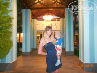 На ресепшен мы попали где-то около 10 утра. Сказали, что наши номера готовы и заселили сразу - за это огромное спасибо!!! Жили во втором корпусе на первом этаже номера 2003 и 2004 (с нами еще бабушка с дедушкой ездили). Первый этаж идеален для отдыха с детьми - старшая сама ходила в номер, на улицу, не надо было париться, что где-то упадет на ступеньках. да и с коляской по этажам таскаться было бы не прикольно...