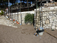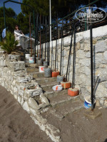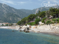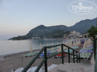 Море и пляж от отеля недалеко, это видно по фото, просто нужно перейти через дорогу, и повернув налево, пройти по променаду метров 150 мимо пляжа отеля Турунч-Премиум, найти отель Дора-Бич, с которым отель и делит пляжные места. Лежаки есть, они бесплатные, но поставить их нужно было самостоятельно спустив по лестнице ( пару дней лестница была занята, см.фото) вообщем , фитнес на пляже был обеспечен. Для любителей позагорать стоит отметить, что после 18 часов солнца на пляже нет, оно уходит за горы.