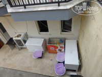 В туалетной комнате душевая кабинка, может только не удобно, что нет гибкого шлага, т.е. лейка душа вмонтирована в стену на достаточно высоком расстоянии, а кран расположен очень низко и близко к стене, чтобы помыть голову нужно изобразить акробатический этюд! Имеется в наличии фен, лежит в дыре для вентиляционного отверстия, также есть по два полотенца на персону. Туалетные принадлежности отсутствуют, т.е. диспенсеры для жидкого мыла есть, закреплены на стене, даже мыло в них есть, но оба они не работают. Если у Вас закончиться туалетная бумага, или понадобиться вынести мусор, Вы будите это делать сами (это более быстрый вариант) или просить на ресепшен убраться. За неделю в нашем номере не убирались ни разу.