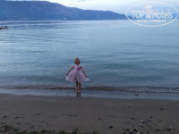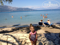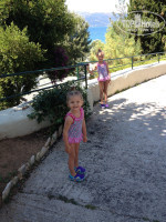 В бассейне были один раз, т.к. все врмя проводили у моря. До него надо идти по достаточно крутой горке, но наши бабушки-дедушки отлично с этим справлялись. Еще там ездит машина каждый 15 минут, но мы всегда сами поднимались.На пляже сначала лужайка с оливковыми деревьями и пальмами, которые создают естественную тень, а потом песочек. Вход в море, так себе; если посередине заходить, там вообще хорошо, но мы всегда располагались сбоку, ближе к пантону, там в море встречались крупные камни, на которые больно наступать, но это не критично и мы и дети отлично плавали.