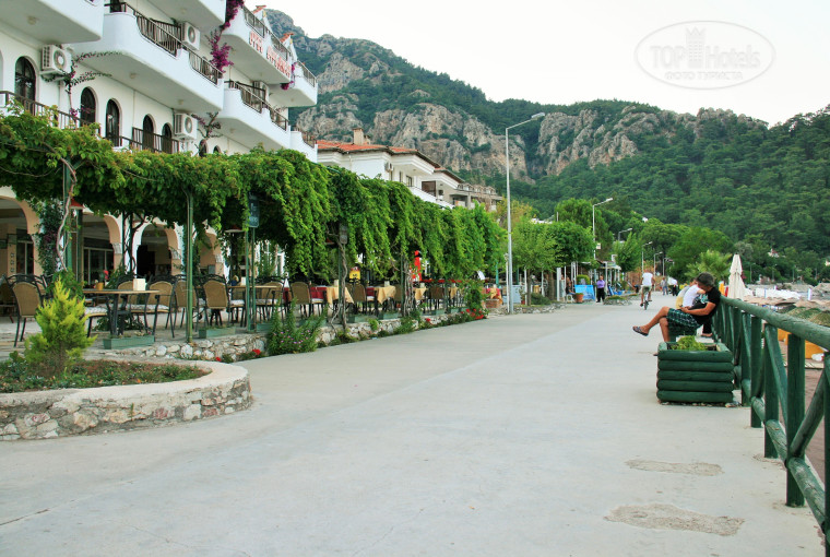 Отель Зеус находится в начале променада с кафе и магазинами. Ближайший супер-маркет - SOK. Чуть дальше находится МИГРОС. так же есть и обычные магазинчики. Повсеместно продаются и различные товара для отдыха, одежда, обувь, сумки. Подешевле эти товары в Мармарисе. Но чтобы до него доехать, выйдет не дешево. 7 лир в одну сторону на долмуше (140 руб) или по морю - 25 лир - туда-обратно или 15 лир - только в одну сторону. По серпантину ехать 35 мин., плыть - ровно час.