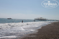 ТЕРРИТОРИЯ. Не большая, но красивая и ухоженая. Если жить в главном корпусе, то всё находится в шаговой доступности. Это очень удобно, если с Вами маленькие дети. Очень порадовало наличие детской зоны на пляже (горки и песочница под крышей). Пляж достаточно широкий, благодаря этому нет "скученности" людей в море. Всегда в наличии свободные лежаки. Ботьшой и красивый пирс. Рельеф дна периодически меняется. Когда приехали, были камни при заходе, но после сильного ветра их занесло песком, но дно стало круче.