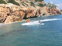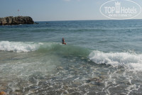 Пляж большой, поэтому шезлонгов и места всегда и всем хватало. Лично мы всегда лежали под тентом на втором этаже. Вход в море разномастный. Слева от пирса песок, но там, практически сразу становится глубоко и плавают водоросли в больших количествах. Справа от пирса местами крупная галька,местами плита, по всей видимости, природного происхождения. Заходить здесь сложнее,но не сразу глубоко и вода намного чище. По плите можно даже добраться до островка. Кстати говоря,возле острова плавают черепахи, иногда даже по ночам выходят на сушу. Одна счастливица показывала нам фотографию с этой красоткой :)).