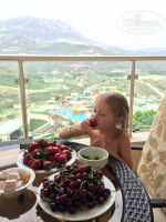 Состав нашей семьи : Супружеская пара, сын 13 лет, дочь 4 года и бабушка 55 лет. Нам дали трёхкомнатный номер с двумя ванными комнатами ( здесь тоже как повезёт можно получить и больше номер по площади). Номер был на 6 этаже в северо-восточном крыле с видом на горы и аквапарк. У нас был указан в путевке номер с видом на море, было сперва желание поменять , но вид был прекрасен , прямое солнце только утром, а полюбоваться на море в отеле и так достаточно мест отдыха , а вот на горы практически только с номеров - решили оставить:). В холле отфотографировал на iPhone все информационные листы проставил напоминания в смартфоне ,что во сколько где и как, и забыл слежку по времени что когда и где начинается и отходит телефон сообщал об этом:)