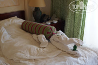 Так как в номере редко бываем, но хочется чистоты, оставляем 1 доллар. Придя в номер в первый вечер – удивились. Убрали, но никого не слепили. Два раза в турецких пятёрках и два раза в египетских пятёрках если оставляли деньги, то что-то лепили, причём иногда с большой фантазией, Нам не нужно, но дочка бежит в номер и спрашивает- Папа, папа, а что дядя слепил ? Второй день- убрано, но не слеплено. Третий день, опять доллар и наконец-таки долгожданный лебедь. Даже дочка замерла на пороге- более куцего лебедя из полотенца размером с носовой платок Я ни разу не видел. Переглянувшись, Мы поняли, что у парня просто нет фантазии и решили сделать ему приятное. Утром из полотенец сделали ему сюрприз(фото внизу) и оставили доллар. Его радостные улыбки и оттопыренный большой палец, подарили Нам надежду, но после обеда дочка опять увидела только заправленные кровати. Мы снова с энтузиазмом взялись за дело и сделали Нильского Аллигатора глотающего игрушку и доллар. В обед Нас опять ждал куцый лебедь и довольный уборщик с оттопыренным пальцем. Больше решили не тратить время на скульптурные работы, а просто оставлять доллар. Все были довольны.
