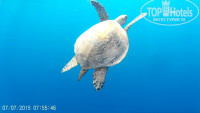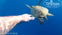 Всё негатив кончился. Риф прекрасен, с другом ходили каждый день в 6 утра плавать. Сбылись мечты идиотов. Здоровались с черепахами и пугали их. Скаты и мурены пугали Нас. Рыба камень, крылатки, наполеон, попугаи, всего и не перечислишь. Порадовал спасатель, днём плавали- вдруг мусор плывёт, вылезли, уже хотели уйти, а на пирсе человек 8. Смотрим, метрах в 100 видим под водой синее тело , метра 2 в диам.- похожее на ската, а левее поменьше-белое. Спрашиваем –Это что ? Спасатель долго глядит вдаль приложив руку к глазам. Наконец говорит- Черепаха, Большая Черепаха. Показываем на белое пятно. Опять долго смотрит, машет рукой и говорит –Черепаха, Маленькая Черепаха. Все на пирсе нервно сучат ногами и ожидают встречи с черепахами. Наконец течение выбрасывает кусок синего, большого полиэтилена и белый мешок. Мы махаем рукой и уходя, задумываемся над его словами, что акул он здесь никогда не видел…