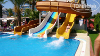 Вообще, территория отеля совсем не большая, но ухоженная. Мы и хотели такую уютную территорию, т.к. дети наши были впервые на заграничном курорте - и нам не пришлось искать их. Два совсем не больших бассейна (один из них с горками) и морской пляж - все совсем близко. Лежаки заняты с утра (особенно у бассейна), но на пляже после обеда можно легко найти свободные места. Анимацию считаю не достаточной, опять же, основываясь на опыте посещения других турецких "пятерок", где аниматоры довольны активно и не навязчиво одновременно зазывали народ. Здесь, следуя не понятным мне принципам, аниматоры выборочно досаждали некоторых людей. По вечерам детская анимация начиналась с показа какого-нибудь мультика на немецком языке - не приятно. Потом дети плясали под, опять же, немецкие песенки - не интересно. Взрослых дискотек мы не дождались ни разу - совсем не было желания. Наши дети проводили вечера в игровом зале - им там все нравилось (правда, это платно - 10 долларов = 8 "жетонов"), а мы сидели в лобби-баре и пили самые незамысловатые коктейли. Пляж и заход в море - крупная галька - так, что лучше запастись специальной обувью. На пляже присутствуют все виды водного спорта - парашют, банан, таблетка, водные скутеры.