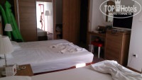 Отдыхали с двумя детьми в июле 2015 г. Размещение на "отлично" - приехали поздно вечером, сразу дали заказанный Family Suite (двухкомнатный номер), накормили в ресторане. В номере все чистенько и работает. Вид - на соседний отель. Смотришь влево - видишь море. Смотришь вправо - видишь горы и дорогу. Убирались каждый день и обновляли бесплатные мини-бары (по две бутылочки пива, Fanta, Соla и вода в каждом), несмотря на то, что иногда мы "забывали" оставить чаевые.