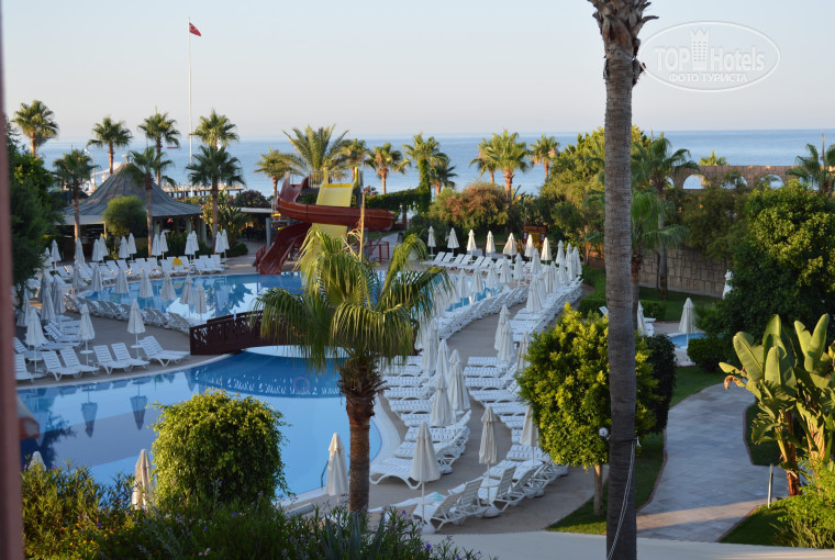 Отдыхала я с ребенком 4 лет 13 ночей. Изначально я купила тур в Insula Resort & Spa 5*, но в автобусе нам сообщили что там какие-то проблемы с канализацией и нас заселят в Club Insula 5*. Ехали из Анталии мы долго, 2,5 часа. Наш отель был последним 7-м в списке высадки из автобуса, поэтому мы порядком утомились, особенно ребенок, который ужасно хотел в туалет и на море! В отель зашли мы в 13:50 и нам тут же надели браслеты и направили в ресторан, что бы мы успели сразу поесть, пока не кончилось время обеда. Затем моментально заселили в номер. Я в этой суматохе даже не успела вложить в паспорт планируемые 20 долларов, но и без них получила номер в котором меня сразу все устроило. По рекомендациям знакомых, которые уже бывали за границей не раз, все проверила сразу: работает ли смыв и душ в туалете, работает ли кондиционер и телевизор, морозит ли холодильник и какой вид из окна. Все было исправно! Номер небольшой, но очень уютный и комфортный! Вид с балкона потрясающий, на всю территорию отеля и море.