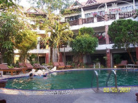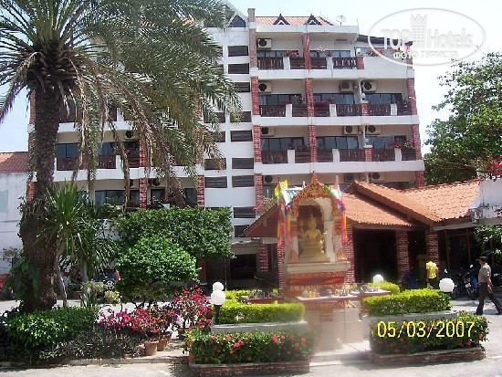 Отель построен полукругом около бассейна, вдоль улицы идет высокий забор, увитый плющем. Вначале нам дали номер во внутренней части гостиницы на 1-м этаже. Тот, кто ругает Белый дом - сходили бы посмотрели Мермейд. Такой двери в номер я еще не видел - крашенная зеленовато-сероватой краской штука, наружные поверхности - фанерка, внутри - ДСП. В одном месте видимо кто то по двери стукнул кулаком - и там образовалась дызочка...хорошо, не сквозная! НУ насчет небольшого количества плесени в ванной и по угалм комнаты - можно и не упоминать. Для эстетов - все дырочки на простынях были аккуратно заштоканы, и светильники были прикручены проволочкой, что бы колпачки с них не сваливались. Несмотря на удобство непосредственного спуска из номера в воду бассейна, мы всё таки попросили нам номерок поменять.... (еще одной причиной было то, что посколько отель стоит полукругом - света в нижние номера проникает очень мало, а учитывая то, что он напротив бассейна - то в номере пришлось бы держать закрытыми шторы, дабы своим голым видом не возбуждать и так довольно повидавших дедушек и бубушек). Следующий номер дали на 4 этаже в том корпусе, где расположен респшн. В этом корпусе подьем на этаж можно осуществлять как по лестнице, так и на лифте. Номер оказался с видом на бассейс, т.е - во-внутрь. Уже гораздо луше - высоко и светло. Полы кафельные, кровать - две сдвинутые, телевизор, кондей, душ, унитаз (тайские унитазы - для тайцев, сидучи на нем, такое ощущение что своё мужское хозайство опускаешь прямо в сливное отверстие) - все рабочее, но очень старенькое...... Душ представляет собой отгороженную шторкой часть ванны с лейкой. Т.е. слив осуществляется непосредственно в дырку, которая сделана прямо в полу. Но - всё работае и гор. и хол. вода есть постоянно. Брали только завтраки. Еда каждый день одинаковая (да соб-сно говоря не поесть ездили), скудненькая, такую и я дома делаю. Фасоль в томатном сосе разогретая, сосиски, колбаска местная, омлет ,яичко сваренное, порезанные огурцы, помидоры, папайя, арбуз и ананас. Можно сделать себе тост с джемом. И чаю испить. Кто любит фкусно и долго есть - вам не сюда. На ресепшн можно взять полотенце для пляжа. Вечером - никакого движения в гостинице нет. Не в смысле играющей музыки или (упаси Господи ,анимации) - прост нет движения. Все спят. У бассейна после заката появляется довольно много комаров, так что в 18 часов от туда приходиться уходить. Никакого бара у бассейна и речи не идёт. Вернее, будка для него есть - но используется для складирования матрасов и сломанных стульев