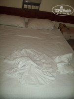 Всем доброго времени суток!!!начну сразу с отзыва:подвёл всё таки отель, а если быть точнее его номера и его питание, ну а также контингент обитающий там!!! приехали мы туда, нам дали номер 802 в корпусе В, там была жесть просто!!! туалет совмещен с душем, если это можно назвать душем! просто влитая в стене лейка душа которую даже снять не возможно, на полу не было бортиков или какого нибудь поддона куда бы текла вода, т.е она бы сразу текла по всему полу.......комнатуха сама по себе маленькая!и кровать!!!когда я глянула на неё я была в шоке!!!!везде грязь и бельё цвета серого не простиранного белья как будто только что помыли им пол и так и бросили!!!вот это был треш!!!вид из окна был на какие то сарайки........мы тут же пошли на ресепшен и сказали что мы там жить не будем ни под каким предлогом!!!вручили админу (Абдула его звали) на ресепшен шоколадку и потребовали другой номер! он что то долго с кем то говорил по своему и в итоге повёл нас в корпус А который был прям рядом и дал нормальный номер! в балкончиком, с нормальной чистой кроватью, с более менее нормальной душевой комнатой! но пахло там морем и сыростью, но мы подумали лучше так чем ещё что нибудь убогое.........