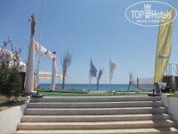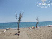 Отель расположен рядом с морем, пляж галечный, местами песок. Море понравилось, хотя пляж скромный. Лежаков не много, свободных не бывает, кажется, никогда, то же самое и возле бассейна. Номера очень скромные, постель в отвратительном состоянии, порванная, в пятнах. Полотенца, правда, хорошие. Мы жили в немере 5 дней, за это время ни разу не было уборки, лишь один раз сменили одно ножное полотенце и то, чем мы накрывались; забрали мусор. На лестнице также не убирают. Из принадлежностей в ванной был фен, работал; шампунь и туалетная бумага, мыла не было. В номере был кондиционер и телевизор.